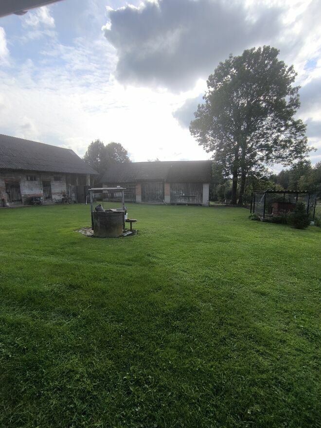 Dom wybudowany jest przy drodze powiatowej, w niedalekiej odległości znajduje się kościół oraz szkoła podstawowa miejsce do zabaw dla dzieci znajduje się ok 1km od domu. Na działce znajduje się również garaż blaszak o wymiarach 6/5, kojec z budą dla psa, studnia z czystą wodą, duża drewniana stodoła z przybudówka, obora która przeznaczona jest na warsztat i garaż, w dalszej części znajduje się Stara drewniana szopa oraz dostęp do rzeki Złota Nitka. Działka jest bardzo przestronna z dozą ilością zieleni. Nieruchomość jest częściowo ogrodzona siatką, panelami ogrodzeniowymi oraz od frontu metalowymi przęsłami z szeroką brama wjazdowa.
